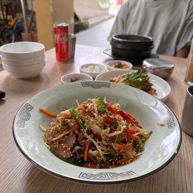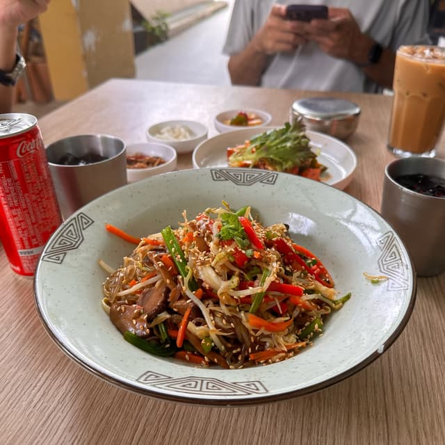 One year past & I’m back here again - with the same omnivore friend no less 😋 I think their #japchae has got even better! I don’t know why, but I seem to mind the absolute volume of #bellpeppers in this even less 🫑 It’s more #mushroom packed than I remember too, improving an already excellent dish 🙌 I’d still pair it with a side of #tofu both because this is otherwise lacking in protein & because they generally have a great sides 😙#throwbackthursday