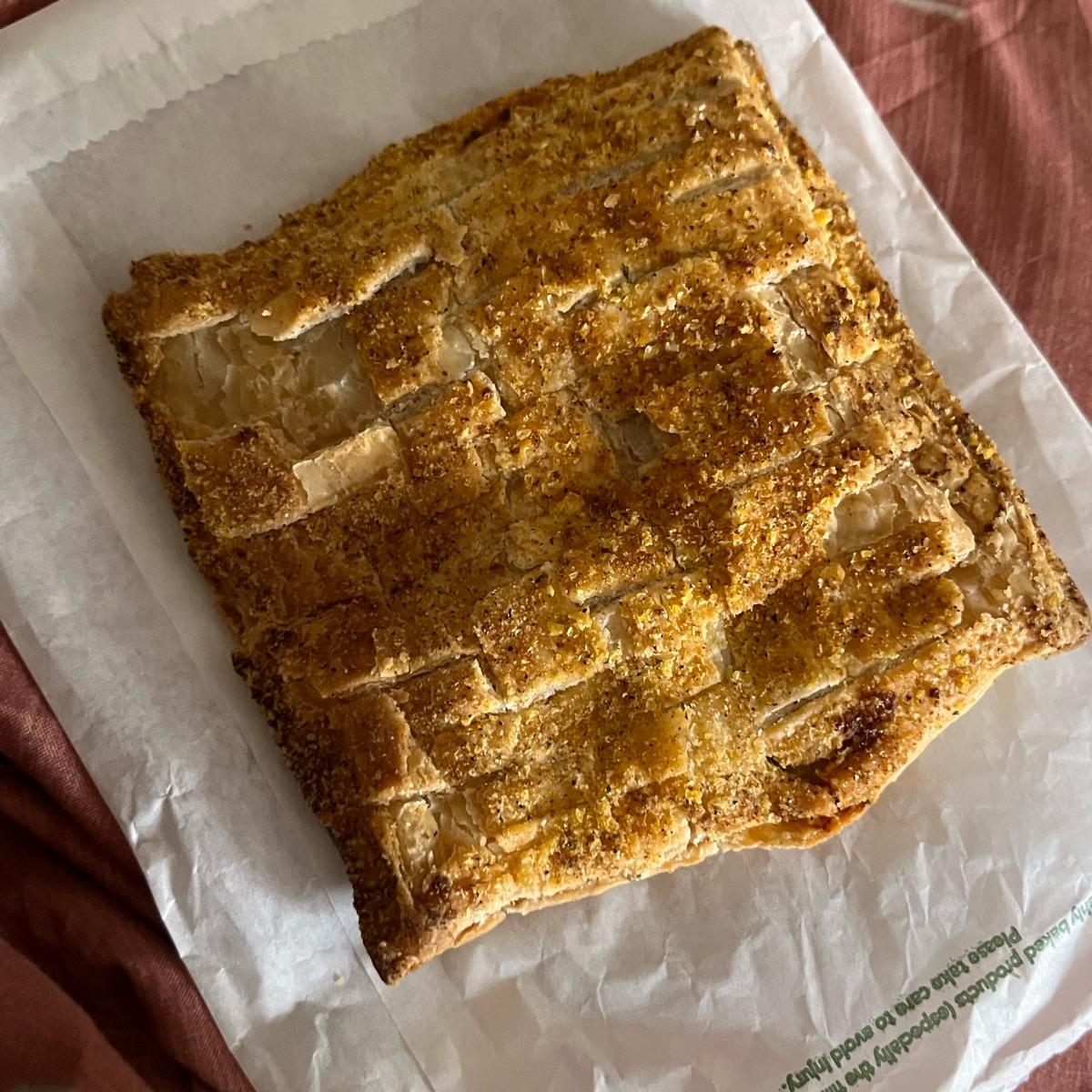 Absolutely loved this!! Lovely & flaky pastry with a crispy crumb topping, generous filling with lots of tasty chicken style pieces and spicy sauce! Doesn’t usually look this bashed it just got banged about in my handbag a bit 😂