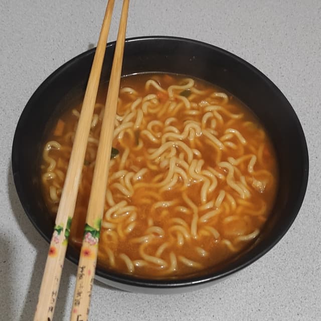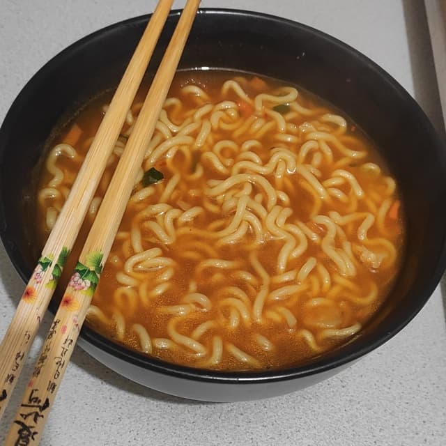 Di facilissima preparazione, e mono-porzione. Il sapore non è male ma è abbastanza piccante e questo copre quasi tutto il gusto. I 4 minuti indicati non sono bastati per me per cuocere i noodles, lo ho tenuto un po' di più. Le verdure liofilizzate sono davvero poche quindi conviene aggiungerne di fresche, se possibile.