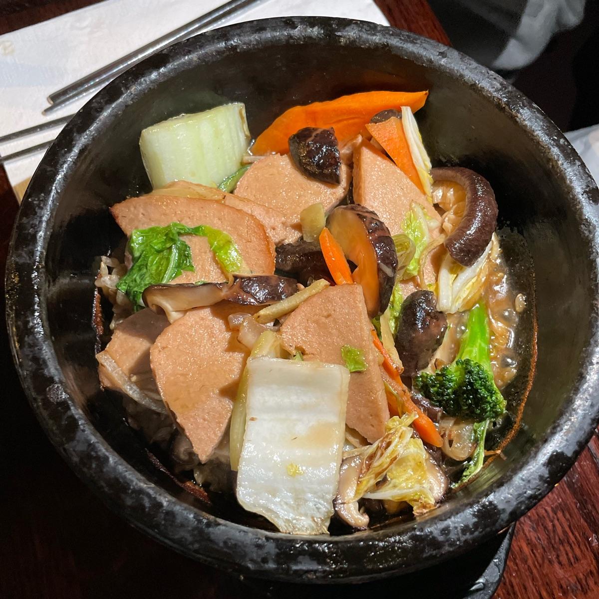 The flavor was good but it was too saucy and a bit too salty. The mock duck, although it tasted good, the texture was more spongy and it wasn’t a duck like texture.