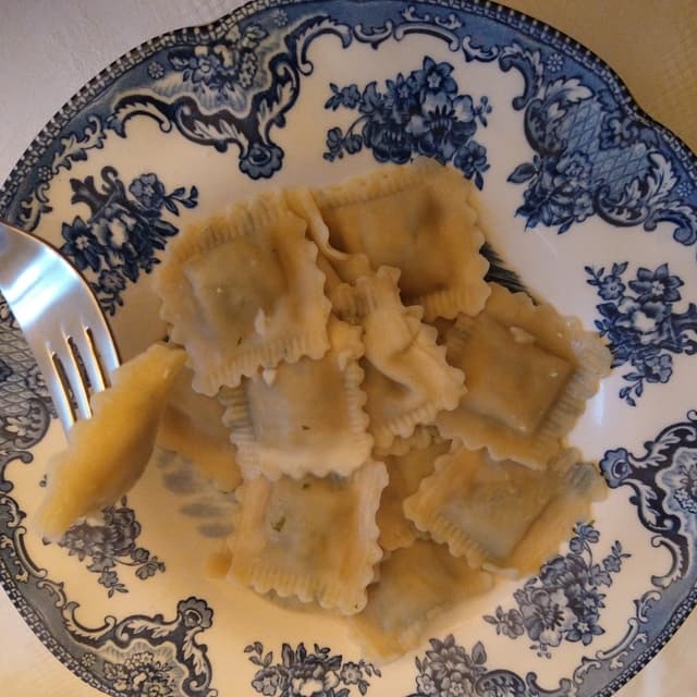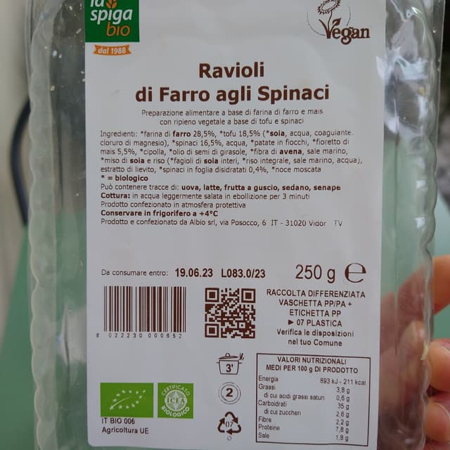 Pasta collosa e sapore... Non saprei come definirlo, diciamo blando, molto blando. Con una confezione continue due porzioni scarse e costavano più di 4 euro. Temo non li ricomprerò #spinach #ravioli #farro