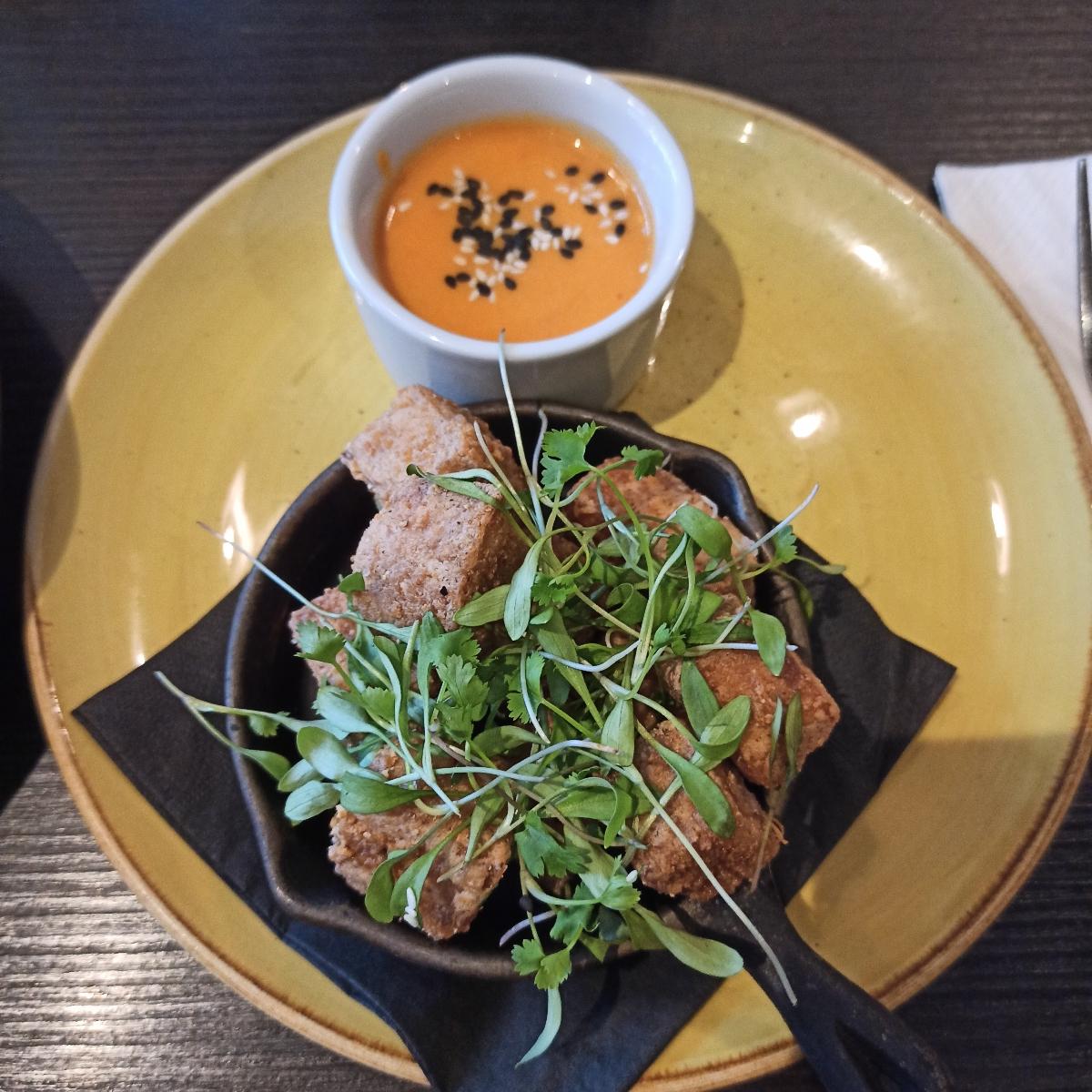 Non ho mai mangiato un tofu così buono. Croccante fuori, dal sapore indescrivibile ma davvero fantastico!! Un must have!