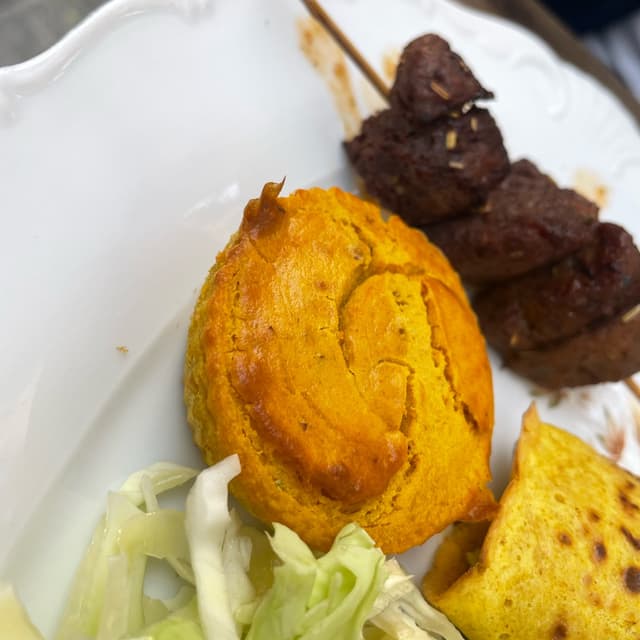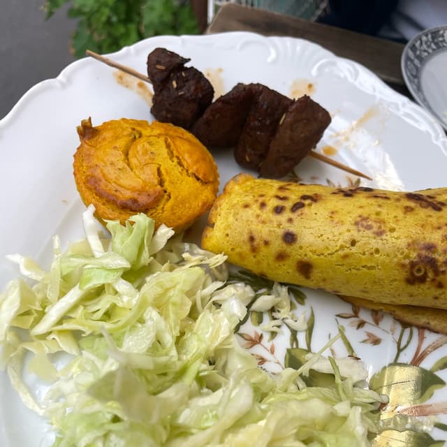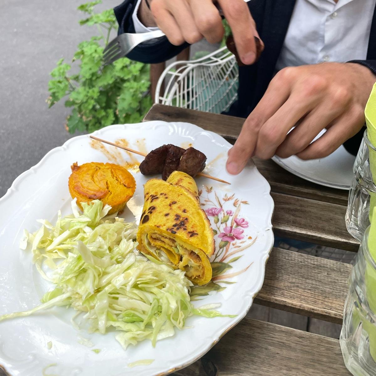 ultimi saluti a schiscetteria! banco chiaramente meno ricco del solito, abbiamo provato un rotolino all’hummus e un muffin salato, ci hanno regalato uno spiedino di seitan (ottima consistenza!) per provare. ciao ciao schiscetteria mi mancherai tanto tanto