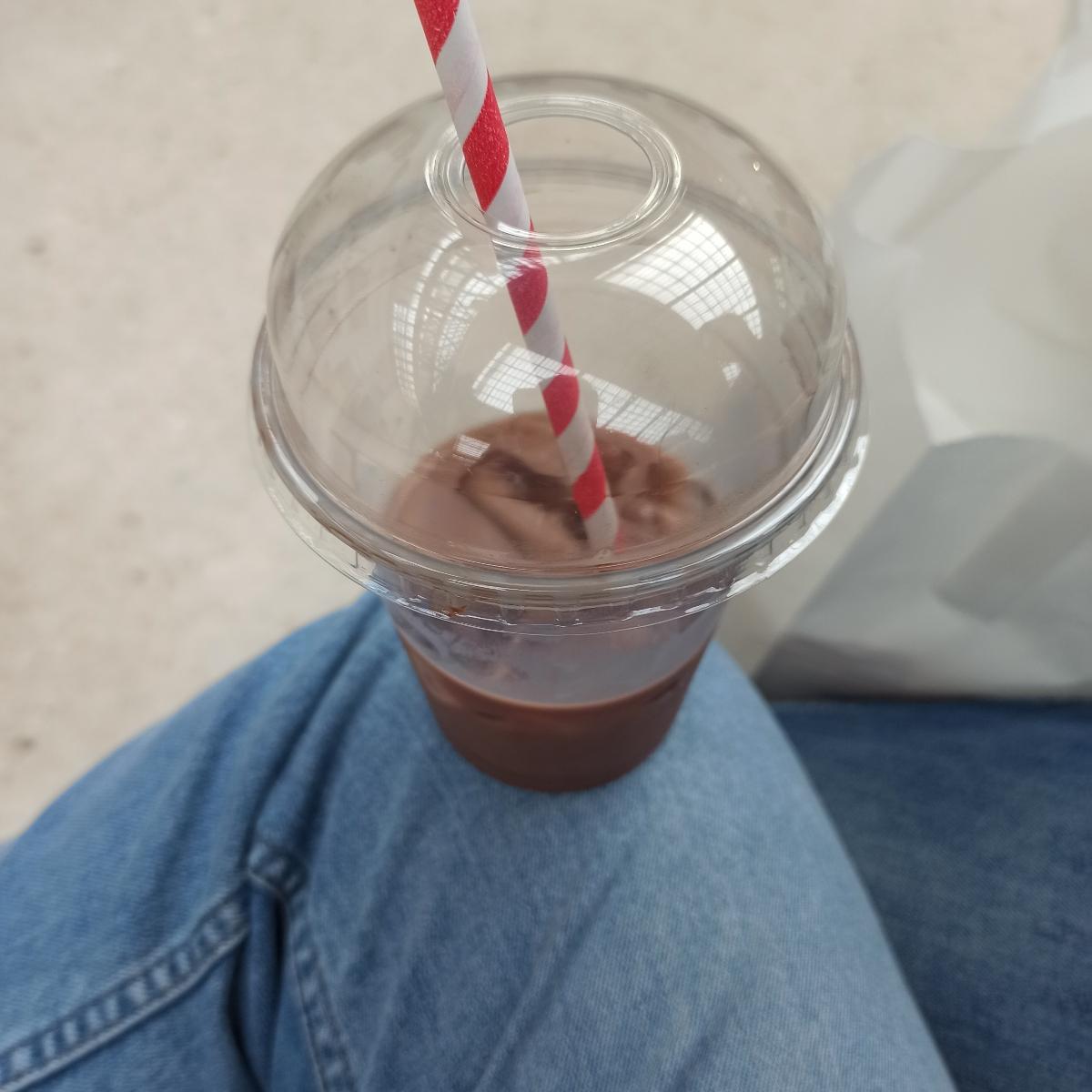 Cioccolata fredda con ghiaccio a base di latte di avena, ottima!