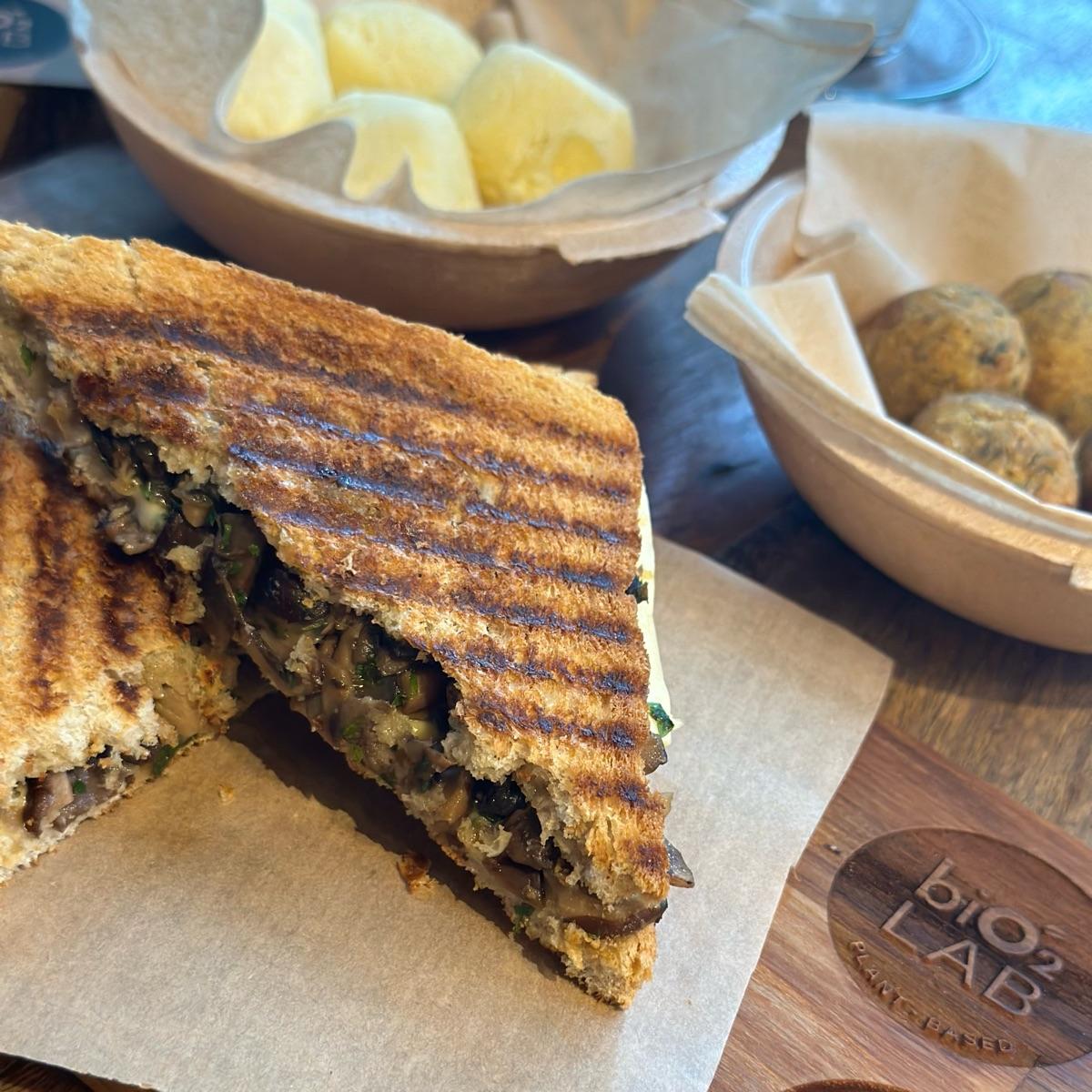 Ponto a destacar aqui para o queijo que derrete! Tostex era algo que eu gostava muito de comer antes de me tornar vegana e esse de cogumelos cumpre o papel! Muito bom!