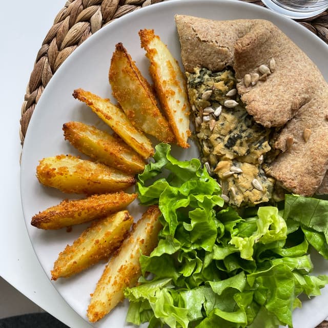 Ci ho fatto una crema frullata con olio pepe sale e poco limone + tahina e ci ho farcito una galette di farina integrale con aggiunta di bietole saltate con aglio 😋 molto buona 🙏🏻