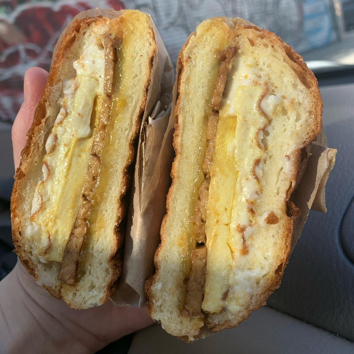 My favorite vegan breakfast sandwich in the city!! One of the best parts is the sweet bun with perfect grill marks *chefs kiss* This sandwich is great with either vegan regular mayo or spicy mayo, depending on your vibe for the day.