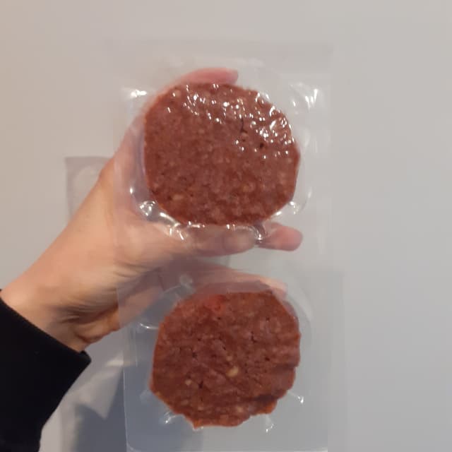 Burger presi all'Ipertosano a 1,99€, sono più piccoli del previsto e un po' più alti dei burger classsici. Durante la cottura fanno veramente impressione sia per l'aspetto (esce un sughino rosso orribile e ci sono piccole palline di grasso all'interno che li fanno sembrare proprio "veri") sia per l'odore, poi in realtà assaggiandoli prevale il sapore di spezie e affumicatura. Li ho trovati un po' pesanti e difficili da digerire, non li ricomprerei