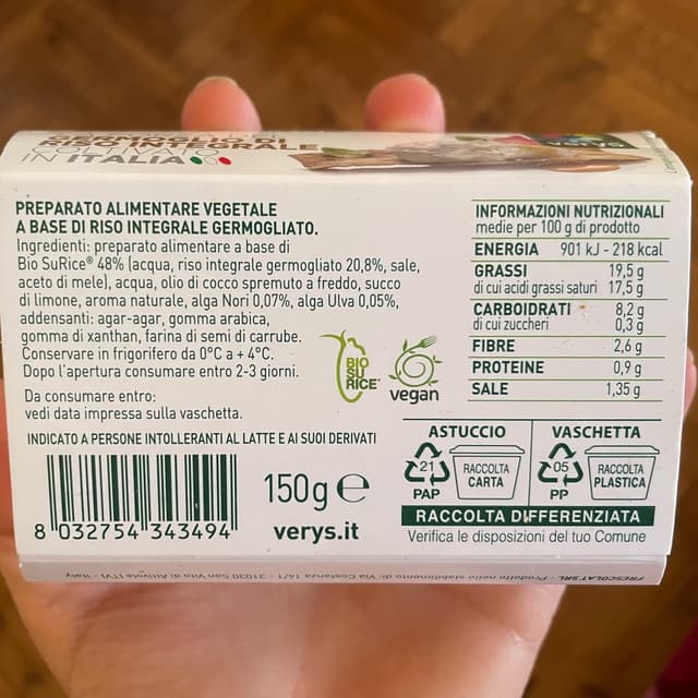 Allora, non c’è scritto e non mi spiego come sia possibile, ma questo formaggetto sa di gorgonzola!!!