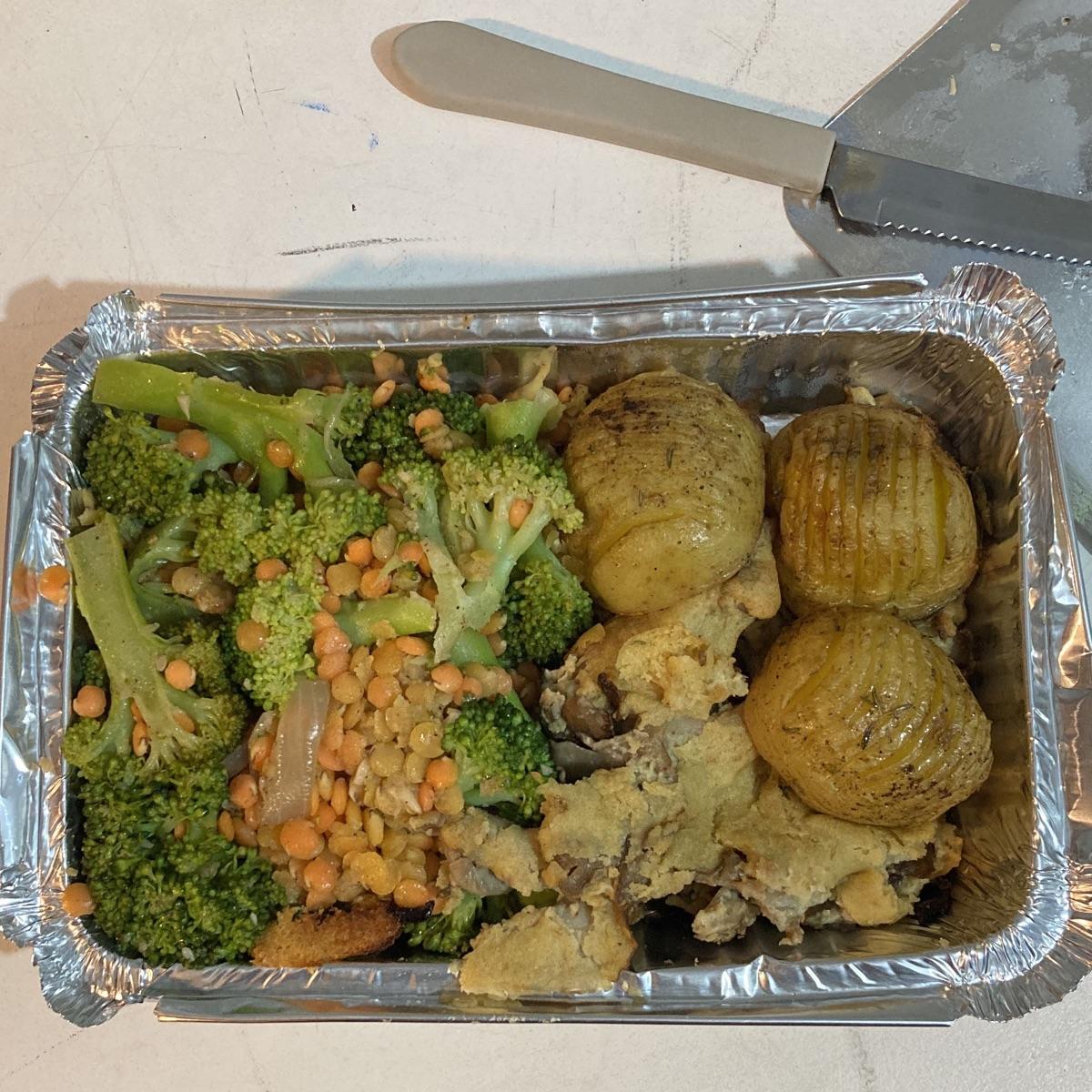 Sou viciada nesse Urbã 😋 shimeji gratinado com batata, brócolos e lentilha rosa . Mais um prato delícia ! @ranchodosgnomos #ranchodosgnomos #casadoconsolador 🙌🏼💙🌎🌱🐻