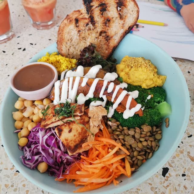 My favourite salad bowl ever. I order it almost every time I'm at KYND. The dressing is delicious and I always feel so much better after eating this punch of nutrition.