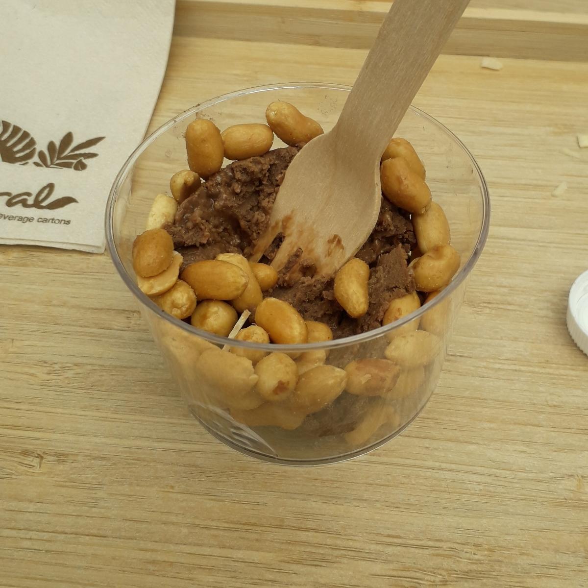L' #hummus al #cioccolato è uno dei dolci disponibili di questo locale, penso sia l'unico #vegan 🍫🍫. Apprezzo molto l'originalità di questo piatto ma a livello sapore non mi è molto piaciuto (al mio collega onnivoro sì e tantissimo, infatti se l'è mangiato quasi tutto lui 😂😂😂). Forse sarà stato perché ero già più che sazia della bowl 😋🌿. Come #toppings potevo scegliere tra #mandorle e #arachidi e ho scelto queste ultime, tostate senza sale. 🥜🥜🦋🦎🌿