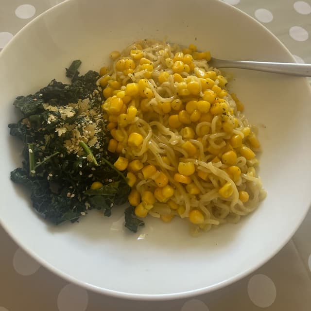 These are now officially vegan. Obviously not ideal with the palm oil but these are so reminiscent of my childhood and give me so much joy…let’s not beat around the bush they’re fckin delicious. Here’s how I like to have mine, with sautéed kale and sweetcorn to make it healthier :)