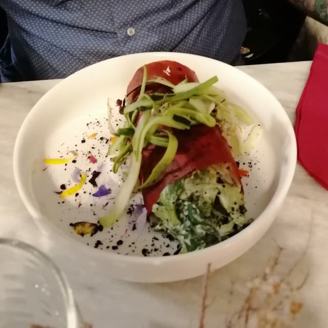 Una delizioso ristorante vegano in centro a Bologna. Abbiamo preso 4 portate più i due dessert straordinariamente buoni.Consigliatissimo e apprezzatissimo.