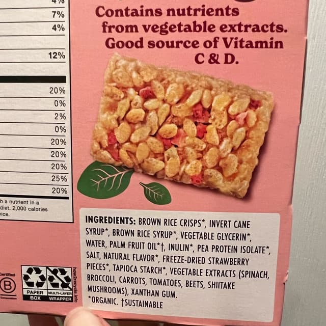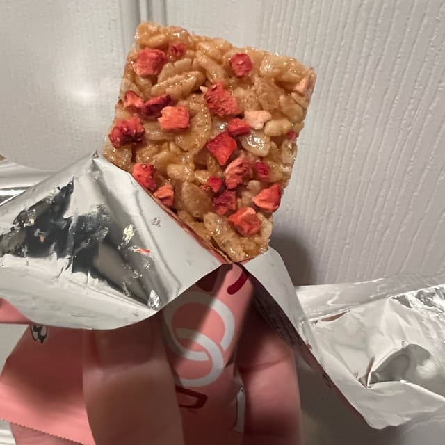 I actually like these better than their plain vanilla ones. They’re sweeter. It’s like a little pop of sweetness. I love the little strawberry pieces! I haven’t had a rice cereal bar like this before. They’re kind of small bars. Probably meant for kids. I’m trying to watch my “figure” so these were the perfect size for me I guess. They’re not that dense. The “warmth” of my fingers (and my hands are usually cold) made them fall apart a bit and it was a bit sticky. Not that big of a deal because I mostly eat at home so I can usually clean it up quickly if there’s a food related accident which unfortunately happens somewhat frequently due to my neurological disorder. Anyways! I recommend these. 6/10