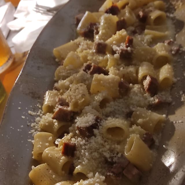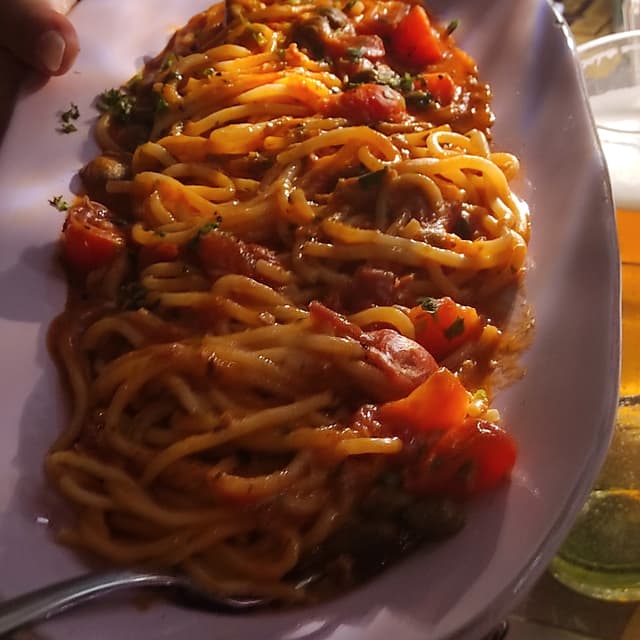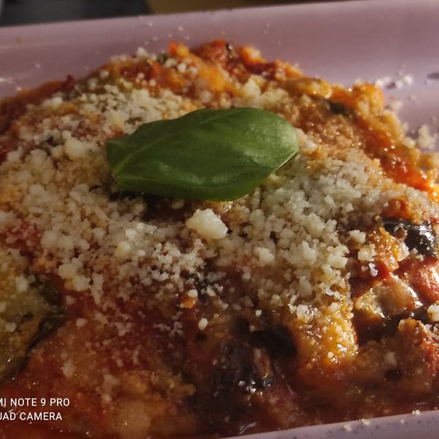 An entire vegan menu: we were a group of 7 people, everything was tasteful and well presented. A very special note for the parmigiana, the pinsa, the strawberries with whipped cream, The staff is friendly and the location easily reachable from metro station barberini. A must for all vegans