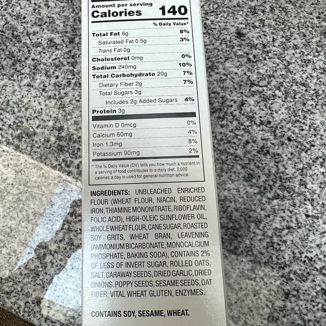 Yum! These bite sized crackers are the perfect snack with cream cheese, hummus or plain! 14 crackers for 160 calories and 6 grams of fat, so don’t eat the whole box at once, but it’s tempting! Great flavor with tons of seasoning. #traderjoes #vegantraderjoes #veganfortheanimals #vegansnacks
