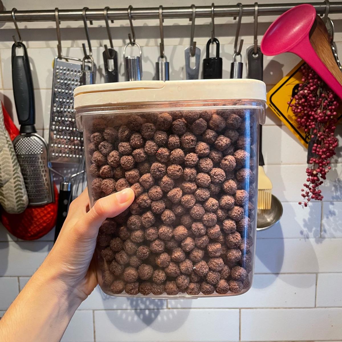 Choco balls vegani e senza glutine. Lista di ingredienti non chilometrica per essere un prodotto confezionato.