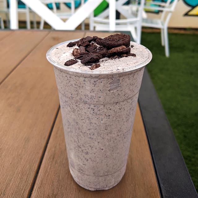 Korny Vibes has the yummiest milkshakes and I can't get enough of the Cookies and Cream (Oatly) flavor.