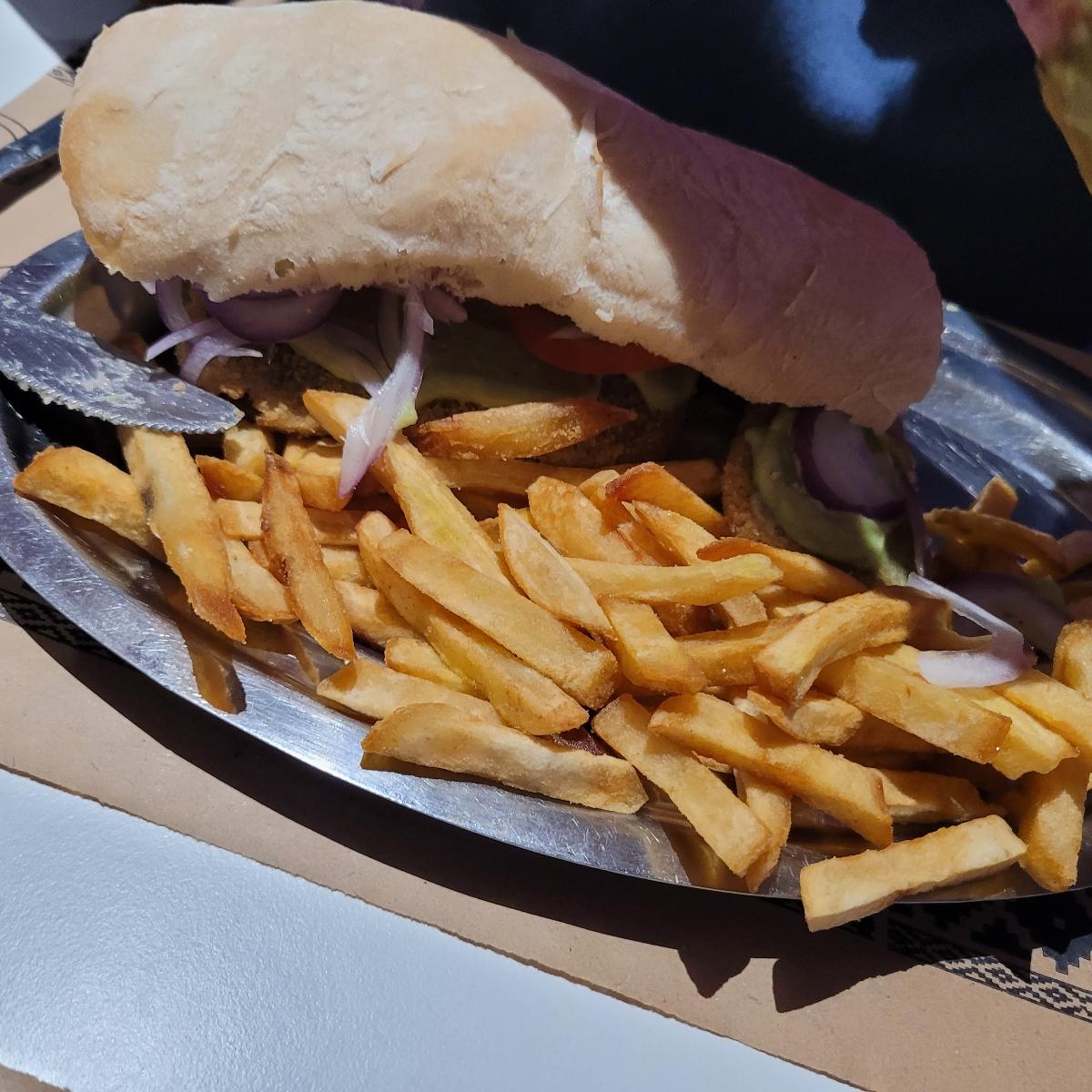 Lo pidió mi papá que de vegano no tiene la "v", sin embargo a José Alberto le encantó el sandwich. El no come tanto como yo por lo que le sobró pero con mucho gusto se lo llevó.