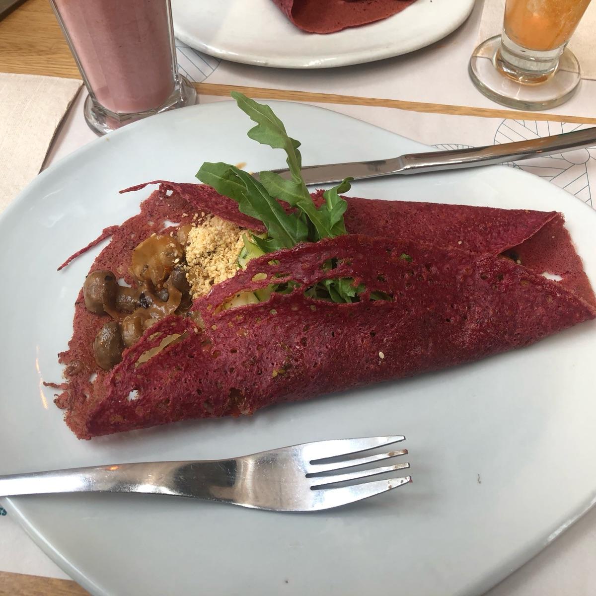 Delicious vegan crepe from Crepes & Waffles in Bogota, Colombia