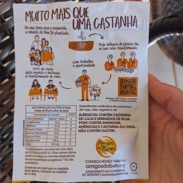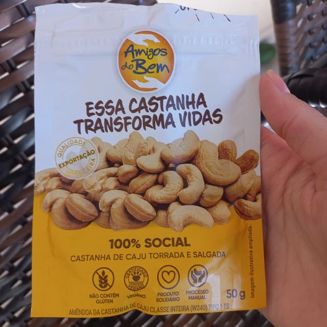 Castanha de caju torrada e salgada. Produto solidário, processo manual, selo eureciclo.