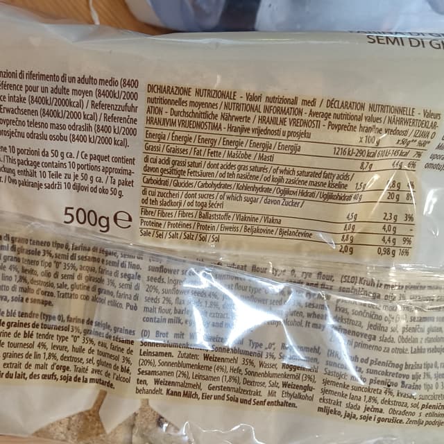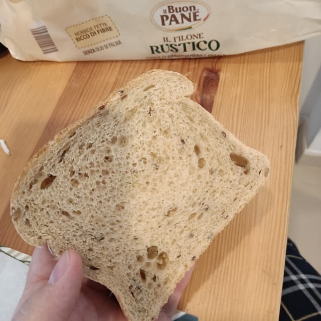 Buon pane, tagliato spesso e molto più appagante! Con semi . Anche il formato della fetta e un po' più grande del normale quindi bene!