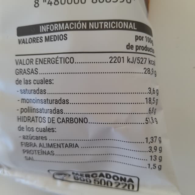 Crispy, bite-sized flatbread with pumpkin seeds. It is a tasty snack but a bit oily so make sure to have a napkin around. There are only five all natural ingredients and the nutrition is pretty good for a snack food. The price is 0,99€ for 80g.
