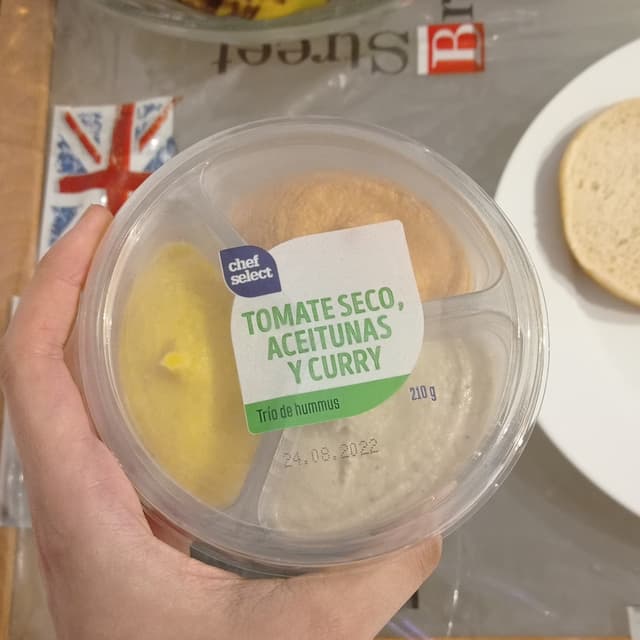 Después, a mí me gusta mucho el curry, pero se han pasado. No sabe nada a hummus y solo sabe a curry, pero no de estos espectaculares sino de los básicos en polvo de tarrito.
