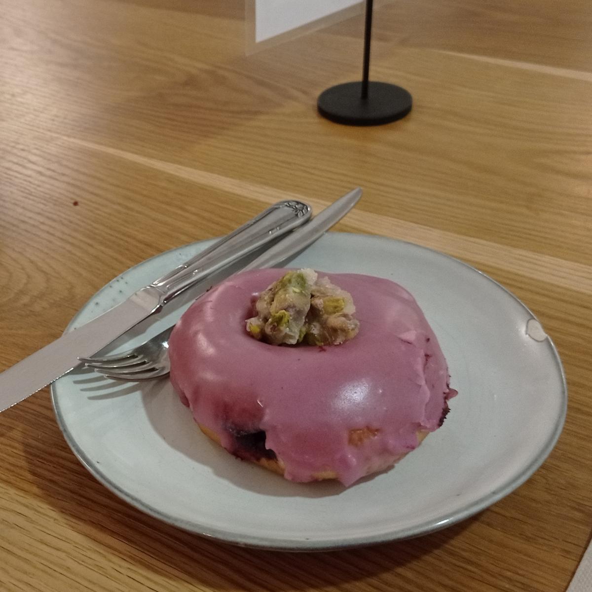 Lo que dice el título. Los pistachos están con una capa de azúcar glas. Ahora, a mí no me sabe demasiado a arándanos el relleno, pero sigue estando bueno. Aunque con todas las opciones que tienen no volvería a pedirlo. Me ha parecido muy dulce, pero es que no estoy acostumbrada a tomar cosas con mucho azúcar