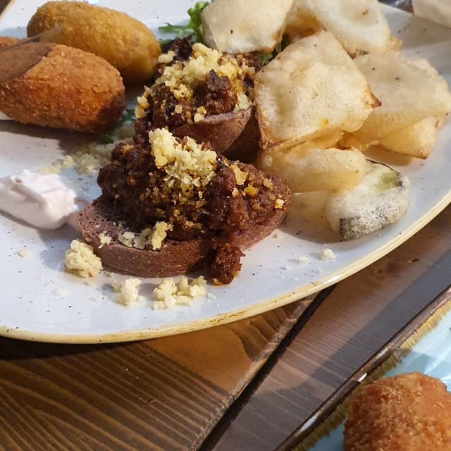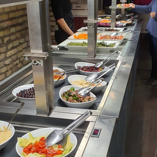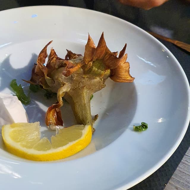 Antipasti ok! Non abbiamo preso verdure al banco self-service.( quelle si pagano a peso) perché non ero interessata. I vari antipasti presi tutti buoni: bruschetta con parmigiana di melanzane( ovviamente formaggio vegetale) fiori di zucca ripieni di formaggio cremoso vegetale,olive bere e capperi. Supplì/ crocchette. Carciofo alla giuria fritto classico della tradizione Romana.. locale spazioso e abbastanza carino: un pò lenti nel servire ma personale gentile.