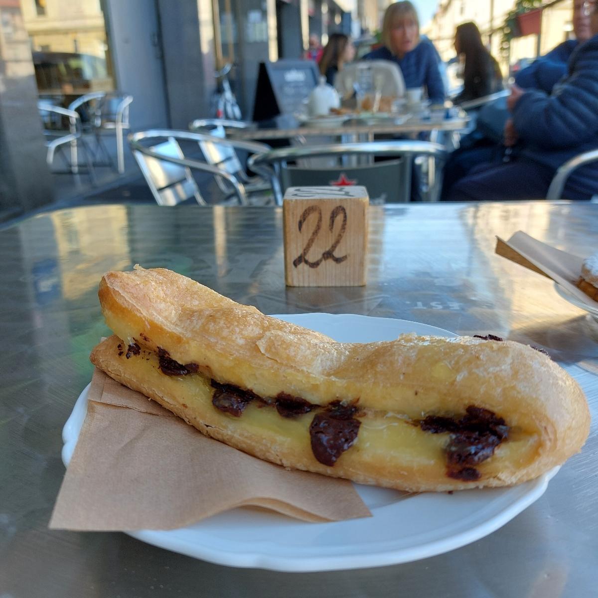 Pain Suisse vegano e senza glutine, farcito al punto giusto di crema e di cioccolato 🫠 si riconosceva il suo essere senza glutine, ma era lo stesso molto buona! Un validissimo pezzo dolce per una colazione adatta proprio a tutti!