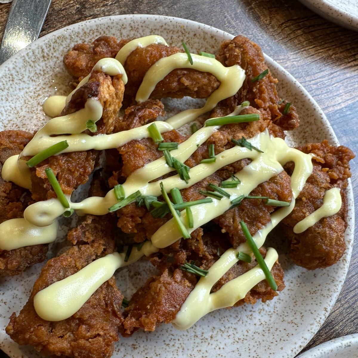 Menu description: Crispy oyster mushroom wings coated in our house spice mix and served with saffron aioli.
