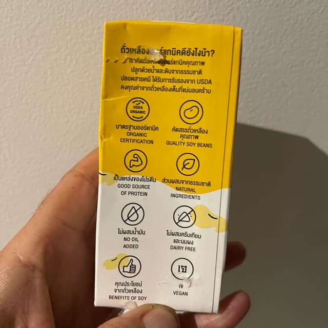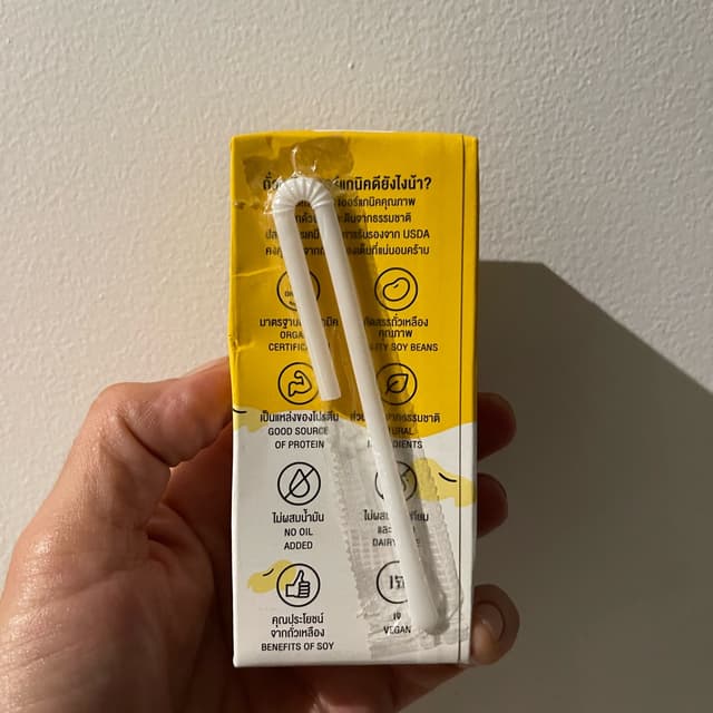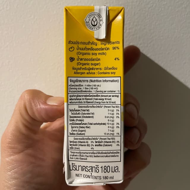 Organic soy milk, that means no gmo soy is used which is important. The taste is good, not heavy as other brand I’ve tried. Just I hope they’ll find a way to replace the plastic straw with a more biodegradable one #organicsoyamilk