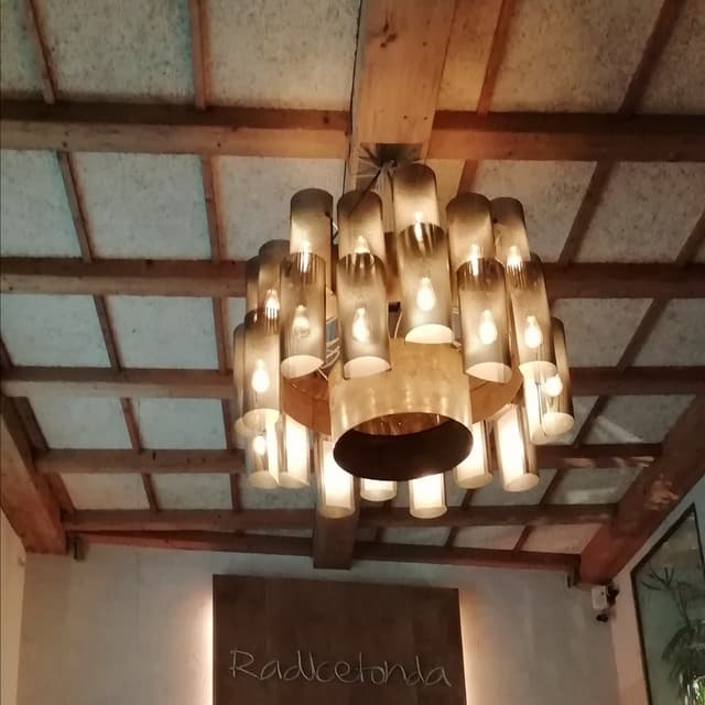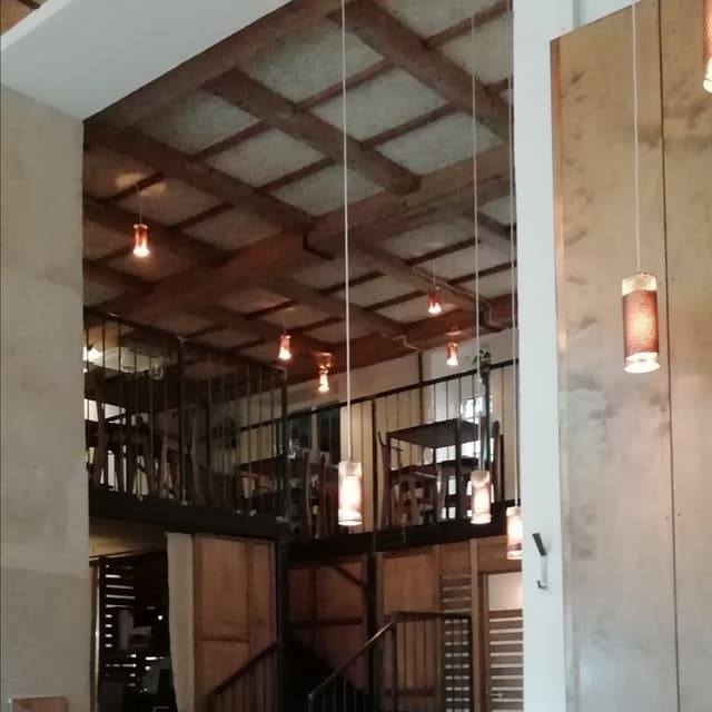 Bello il locale, con legno, verde e un bel soppalco.
