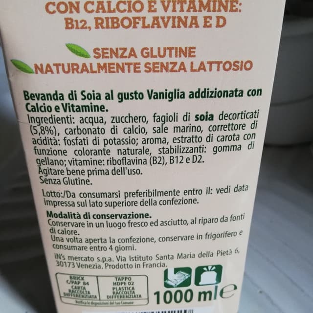 Bevanda a base di soia al sapore di vaniglia. Il sapore è molto dolce, si sente tanto la vaniglia. É arricchito con calcio e vitamine B12, B2 e D.