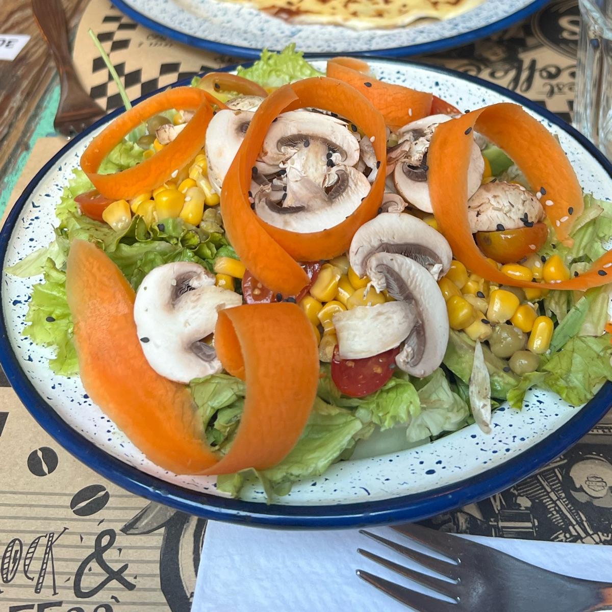 Ensalada super cargada. Le falta algo de legumbres para ser proteica.