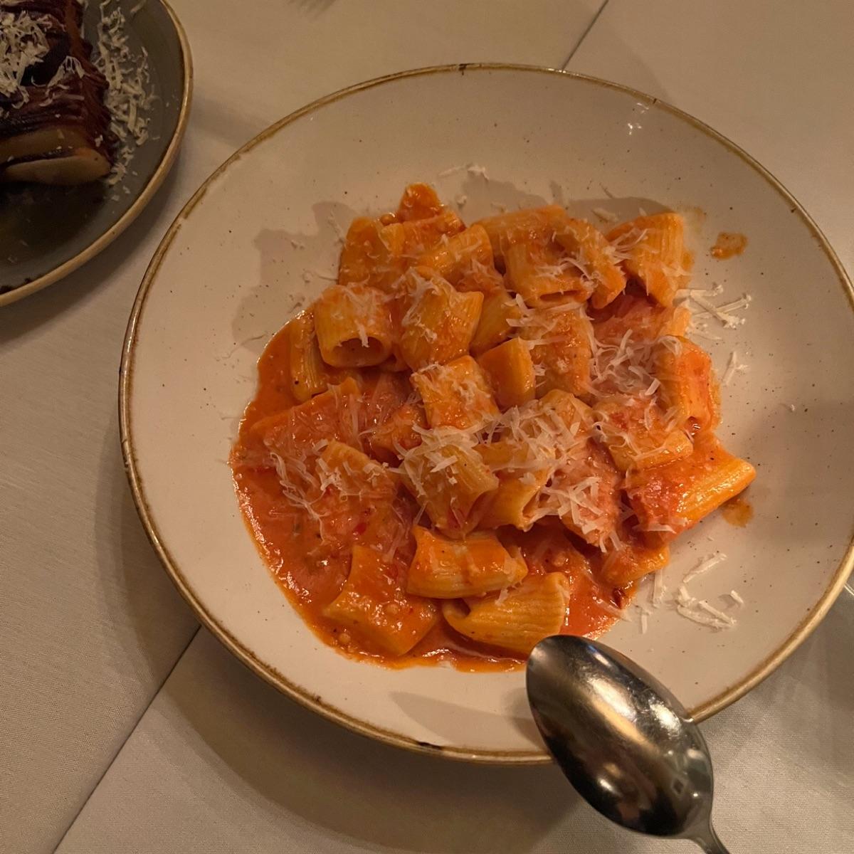 I absolutely loved this spicy rigatoni!!! From my experience, most dishes that label themselves as “spicy” aren’t actually that spicy, but this pasta was! Flavors were incredible, def one of my favorite restaurants 🧡