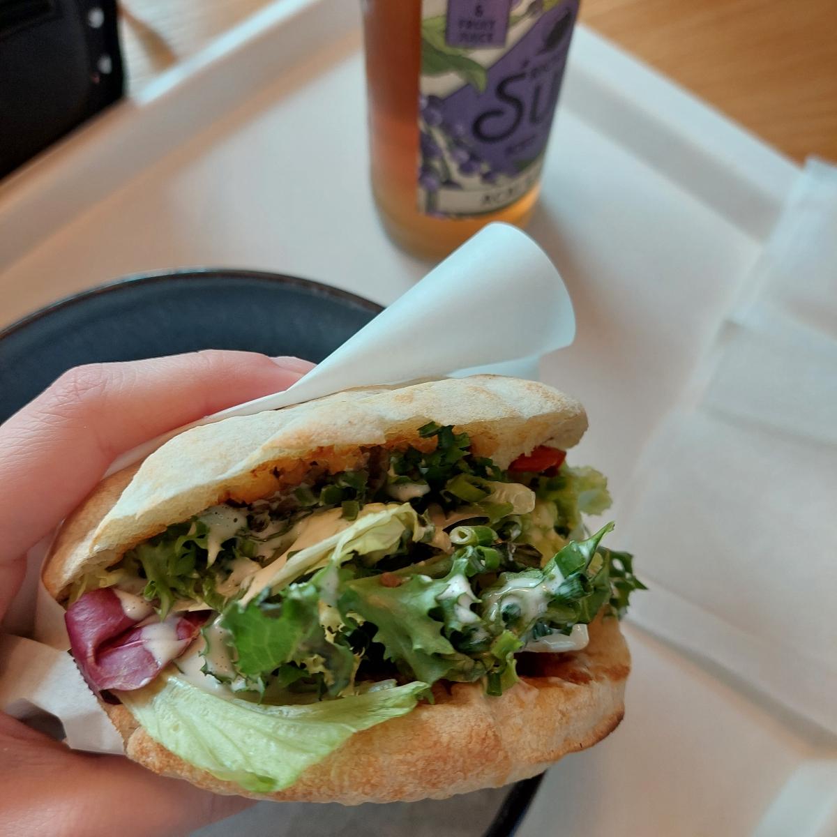 Pita che manca un pochino di gusto, ma nel complesso buono e soprattutto qualcosa di diverso dal solito. Locale piccolo ma molto carino, con anche dei distributori automatici all'esterno che vendono alcuni prodotti vegan.