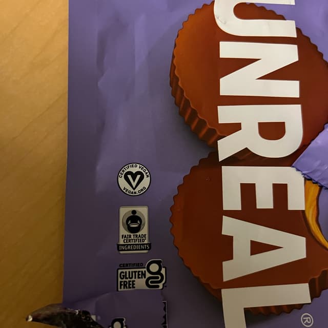 Where almonds and dark chocolate live the good life! Rich, chocolaty goodness combines with creamy almond butter for a melt-in-your-mouth treat that can satisfy even the most nagging sweet tooth. But, unlike other options, these chocolates are dairy-free, gluten-free, soy-free, and vegan. UNREAL is on a mission to change the world, one snack at a time… That’s one non-gmo, nothing artificial, responsibly-sourced, unreal tasting snack, mind you -- free of artificial flavors, dyes, and preservatives, and made only with Fair Trade Certified™ and non-GMO Project Verified ingredients.