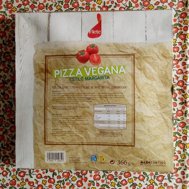 🍕🍕🍕🍕🍕🍕Con lo fácil que es hacer una pizza vegana y apenas hay variedad para nosotros en los sĂşper!!! Gracias Aldi y Lidl 🙏🏻 Pizza de finĂsima masa con tomate y preparado a base de arroz integral simulando el queso vegano. Producto ultracongelado. En unos 10-15 minutos al horno la tienes lista.