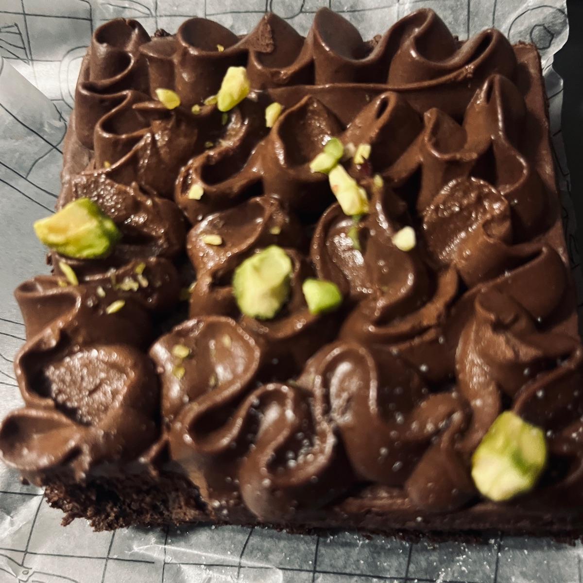 Me encanta, la calidad de productos es lo más.Viene con frutas arriba pero se las saco porq no me gustan con el chocolate.Arriba tiene una crema bariloche y pistachos.