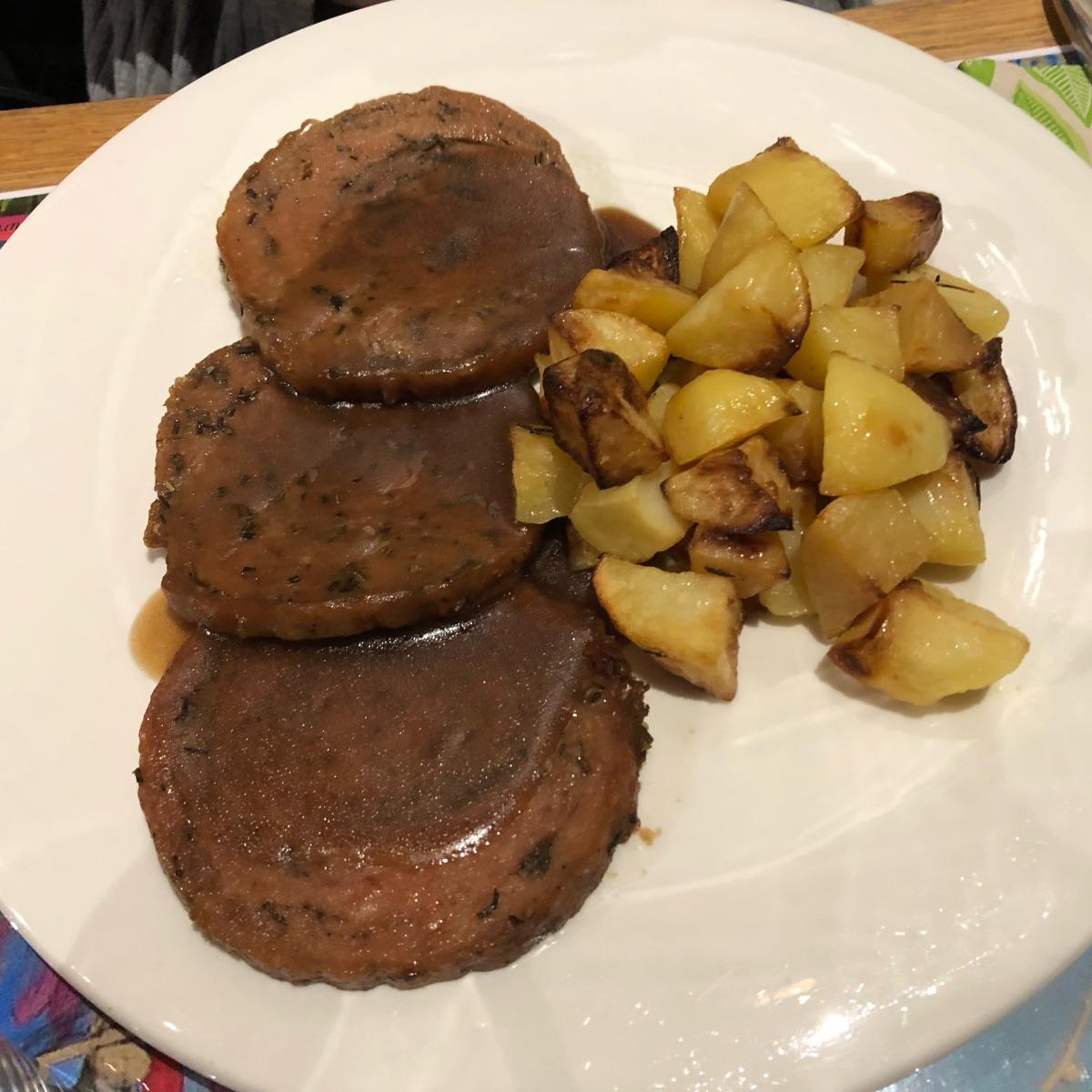 Arrosto rosa di seitan servito con salsa Demi glace e da menĂš purea di patate (in questo caso su richiesta ci hanno messo le patate arrosto). Lo avevo assaggiato in precedenza e benchĂŠ il prodotto fosse di altissima qualitĂ , in cottura risultava un poâ asciutto, mentre con lâaggiunta della nuova salsina è perfetto! Molto molto buono e sfizioso âşď¸ #seitan #seitanlovers