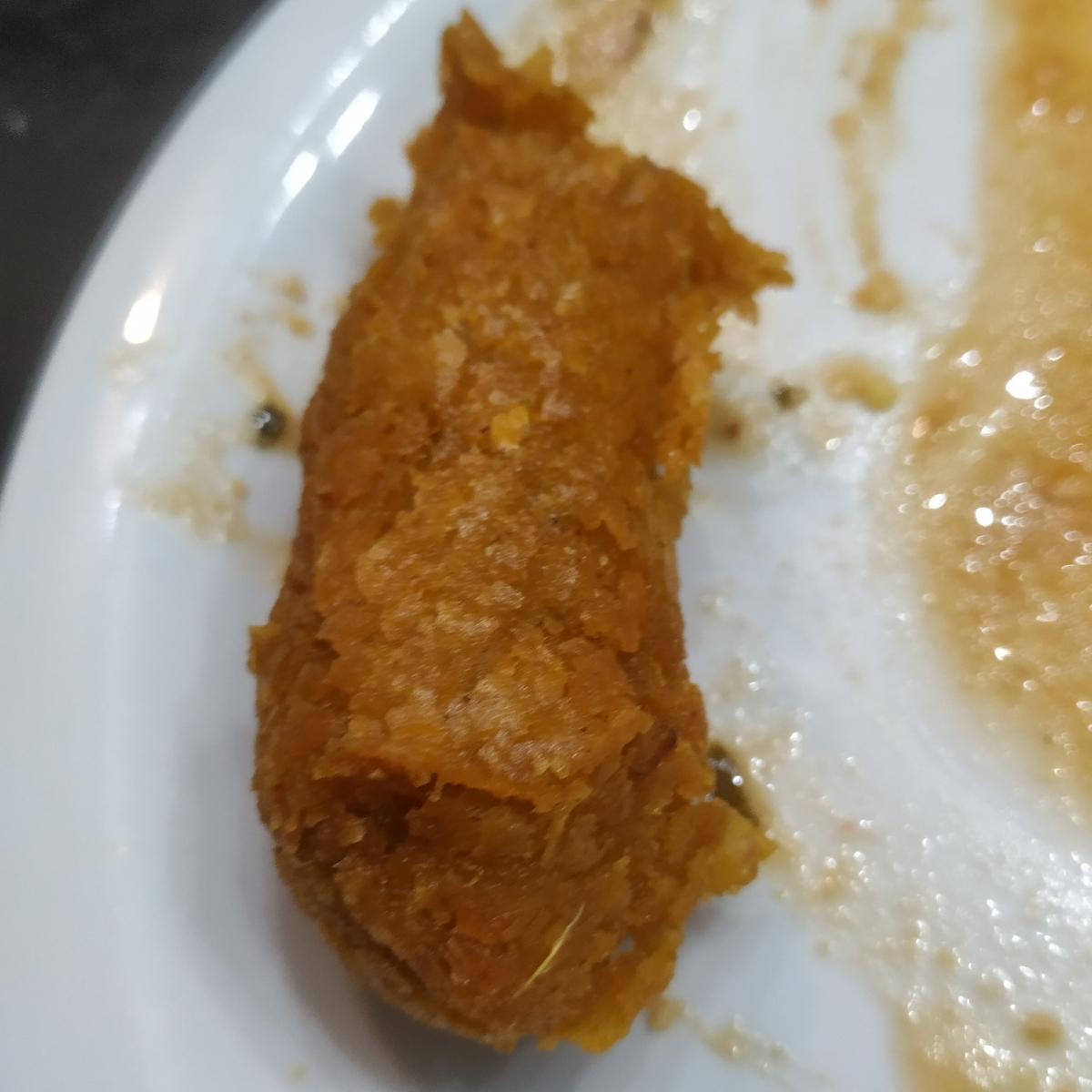 Bolinhos feito à base de batatinha de inglesa, shimeji e gengibre (frito). Vale demais a pena