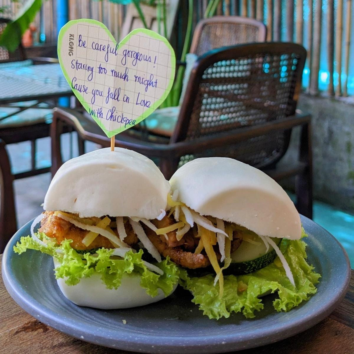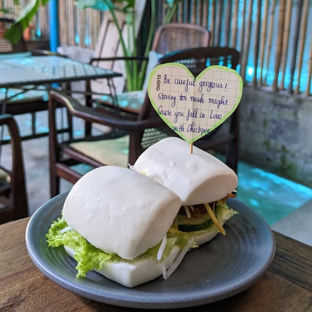Soft bao buns, similar to Chinese steamed mantou since this is a Cantonese-influenced Vietnamese dish! Stuffed with fried tofu and chickpea tempeh in homemade peanut sauce, sweet potatoes, shredded coconut, cucumber, and lettuce. Not really anything like traditional Vietnamese bao buns, which are typically filled with minced meat, Chinese lupcheong sausage, and hard boiled egg. Nonetheless still yummy and nutritious without trying to mimic animal products! I was really amused by the cute and witty little note too hahaha. (45,000 VNĐ) #vietnamese #vietnam #veganvietnamese