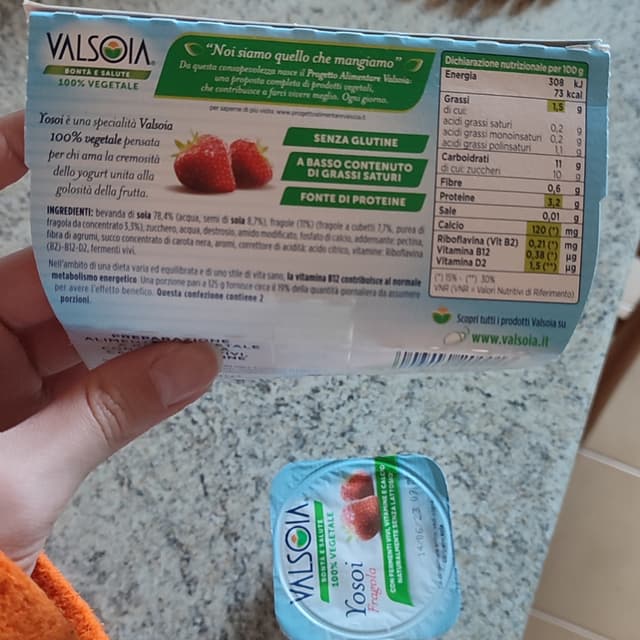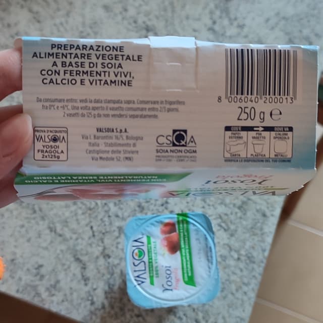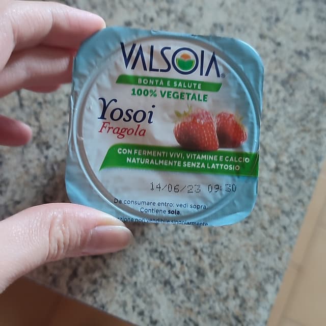 Yogurt molto buono nel complesso, é sempre bello trovare nuovi gusti di yogurt da provare. Questo alla fragola non sa tanto di soia ma si sente davvero molto la fragola e i pezzetti di frutta all'interno. Super consigliato.