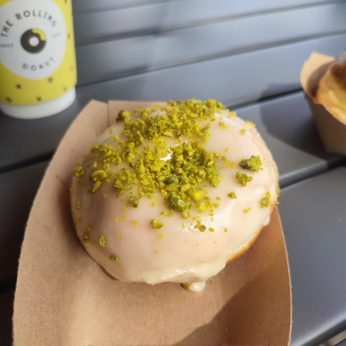 Forse 2 stelle e mezza totali sono un voto un po' troppo severo ma rispecchia in pieno il mio disappunto quando ho scoperto che questo donut non è ripieno, ma solo glassato 🙃 in effetti c'era scritto nella descrizione sul cartellino, ma non lo avevo letto e già sognavo un'esplosione di crema al pistacchio al primo morso. La glassa troppo dolce per i miei gusti e il sapore del pistacchio (in granella) si sentiva poco. Costo 3,30 euro.