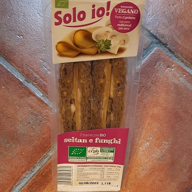 Tramezzini biologici con pane ai multicereali con seitan e funghi. Veramente buoni con una salsina fantastica. Ottimo rapporto qualità prezzo. Più sani di tante altre varianti proposte