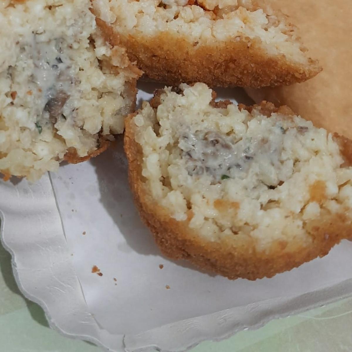 Diviso a metà per far vedere il ripieno, mi è piaciuto. Molto delicato, costa 3,50 €
