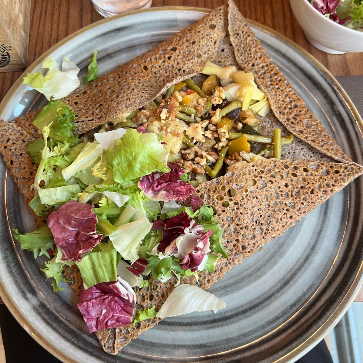 Yummy galette de sarrasin that features all the good veggies ( artichokes and asparagus too ). I highly suggest asking for vegan options since the guys are super friendly. Perfect for the lunch break